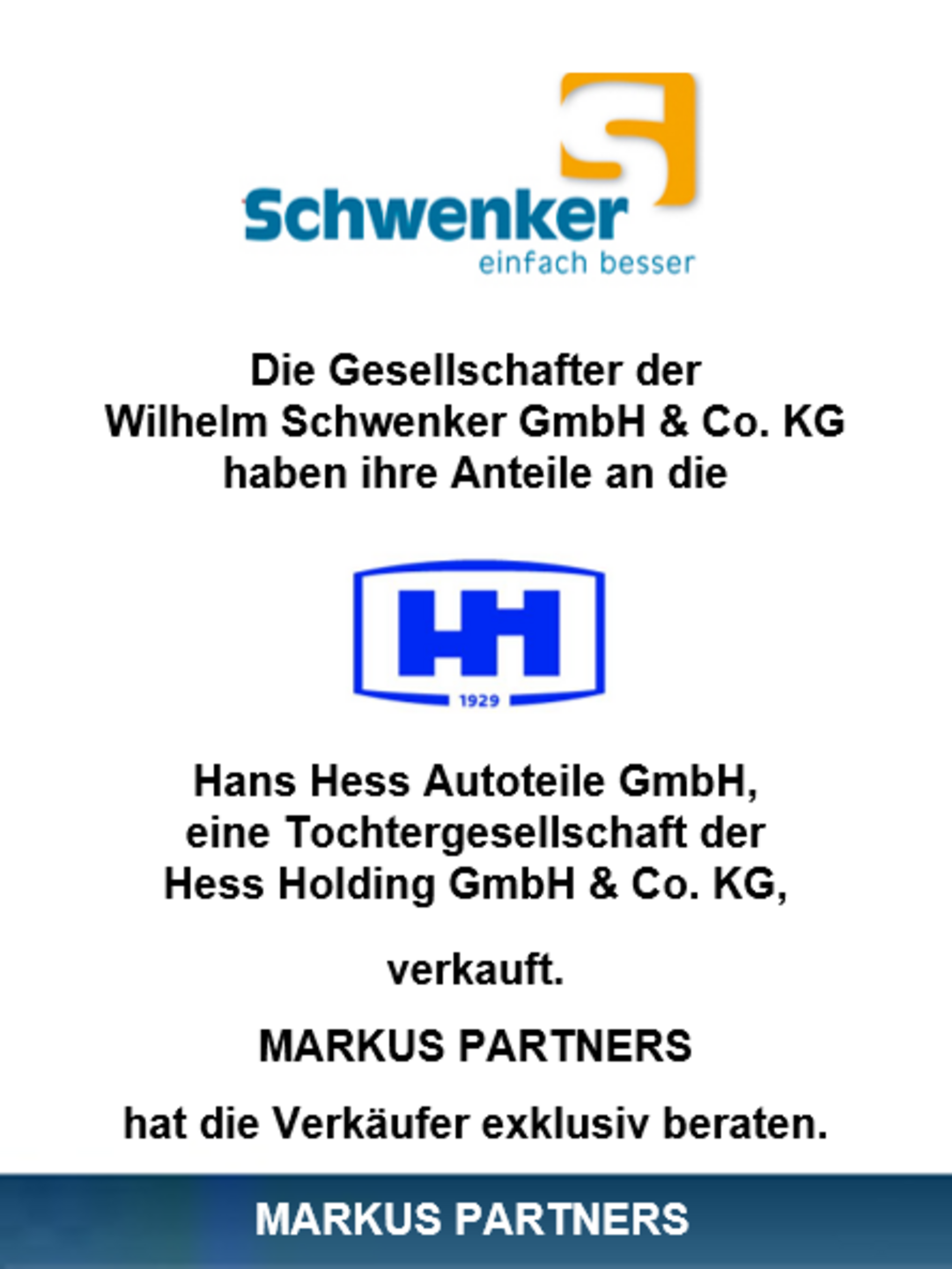 Dezember 2016 – Ab dem 01. Januar 2017 wird der bekannte Teilegroßhändler Schwenker mit Sitz in Minden ein Teil der Kölner Hess Gruppe. Auch zukünftig wird das Unternehmen unter seinem Namen am Markt tätig sein. Mit Schwenker erweitert die Hess Gruppe ihre Marktbearbeitung auf Deutschland und Europa. Alle Mitarbeiter von Schwenker werden übernommen.